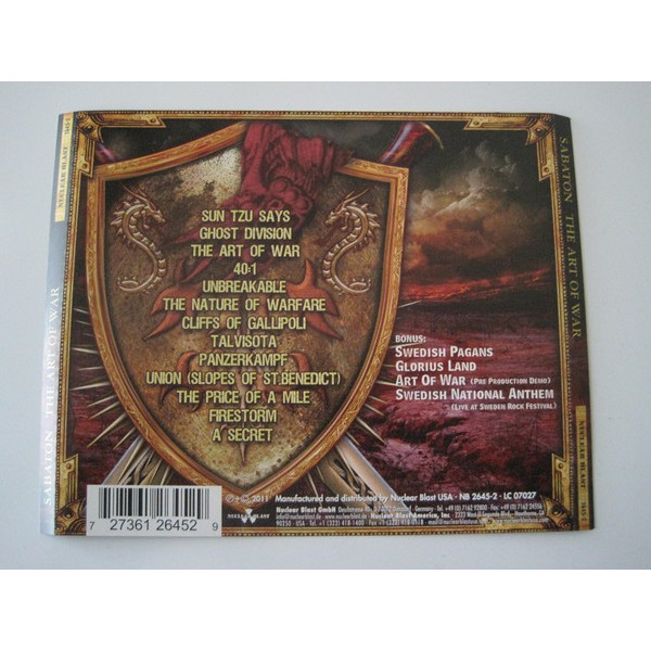 Web SABATON - The Art Of War CD. This album is based on the writings of General Sun Tzu the celebrated military tactician from ancient China. Toto konkrétní vydání vyšlo v Evropě ve vydavatelství Nuclear Blast dne 29.